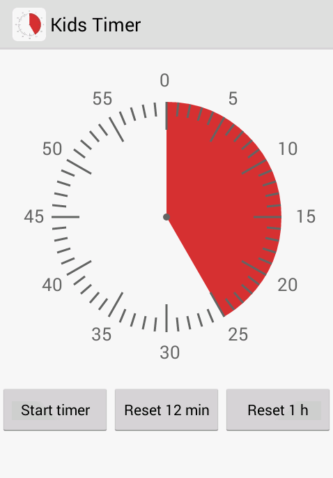Pont olyan, mint a csillagászati áron kapható time timer időzítő. Az ingyenes telefonos válozaton (van fizetős is, nem tudom, miben tudhat többet) egy kör 12 percet, vagy 1 órát mutat, ezen belül a színes (piros, vagy kék) sáv jelzi, mennyi idő van még hátra (sőt egy a háttértől kicsit eltérő színű fehér sáv azt is jelzi, honnan indultunk). Percenként állítható 1-60 percig. Megállítható és újraindítható, a végén pedig diszkrét a csörgés.